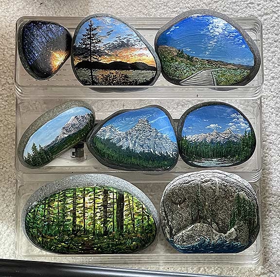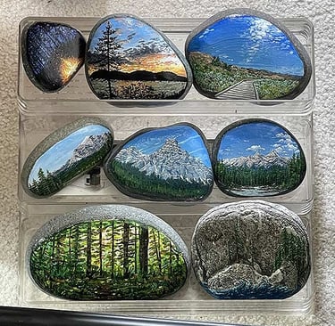 Emily's artwork is breathtaking! The natural landscapes truly capture the essence of nature. I love my hand-painted rock; it adds a unique touch to my home.